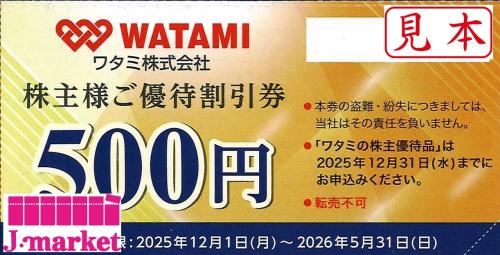 ワタミ(和民・わたみ)株主様ご優待券 500円 有効期限 2026年5月31日
