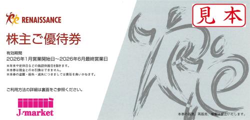 ルネサンス株主優待券 有効期限 2026年1月~6月最終営業日まで