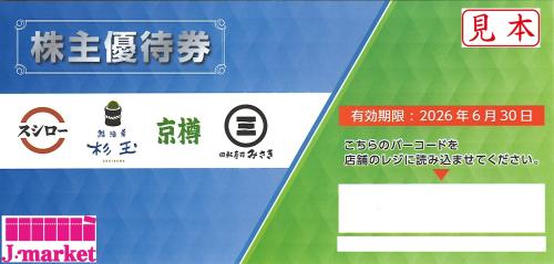 【番号通知可能】スシロー・京樽などで使える株主優待券16,500円分 有効期限2026年6月30日