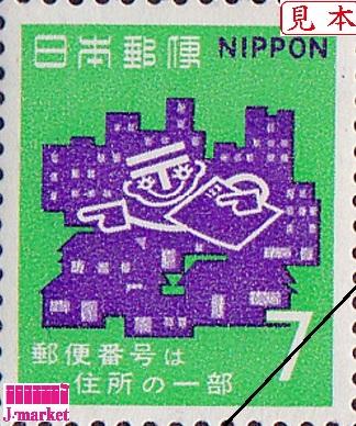 旧柄(1969年 はがきとナンバー君) 普通切手 7円 【7円×100枚シート】