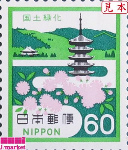 旧柄(1981年 国土緑化 奈良の風景とナラノヤエザクラ)普通切手60円 【60円×100枚シート】