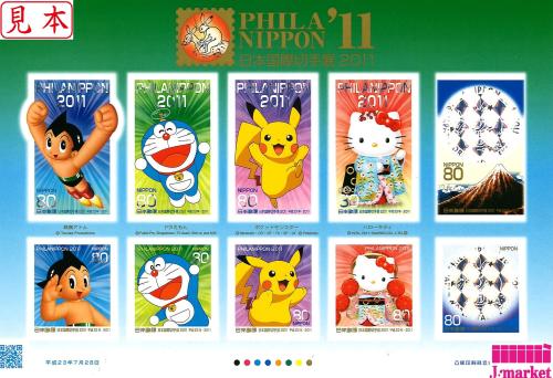 【特殊切手シール80円×10枚シート】日本国際切手展2011② アトム ピカチュウ 額面800円分