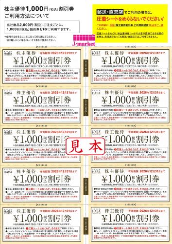 ハーバー優待(HABA)10000円(1000円×10)オーダーシート封筒カタログ付26/12/31