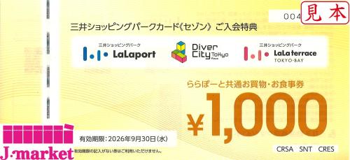 ららぽーと共通お買物・お食事券 1,000円 2026年9月30日まで